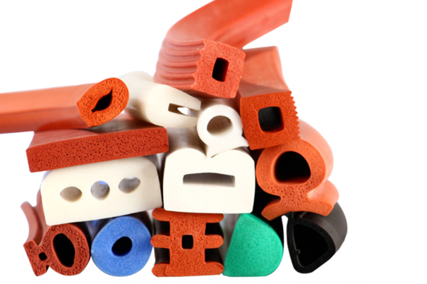 擠出機頭也是產品的截面形狀,有一定長度,在力與溫度的作用下,機頭出來產品經過高溫硫化成型。此工藝成型的產品一般是條形的產品,產品截面可以各種各樣。譬如,矩形長條,環形硅管,等.